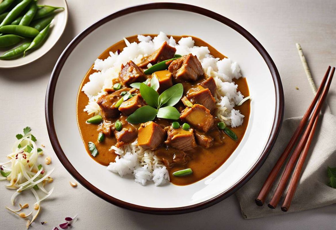 Ce plat, originaire du sud-est asiatique, est prisé pour ses saveurs chaudes et épicées. La version au porc est particulièrement appréciée pour sa douceur et sa texture qui se marient à merveille avec les épices du curry.