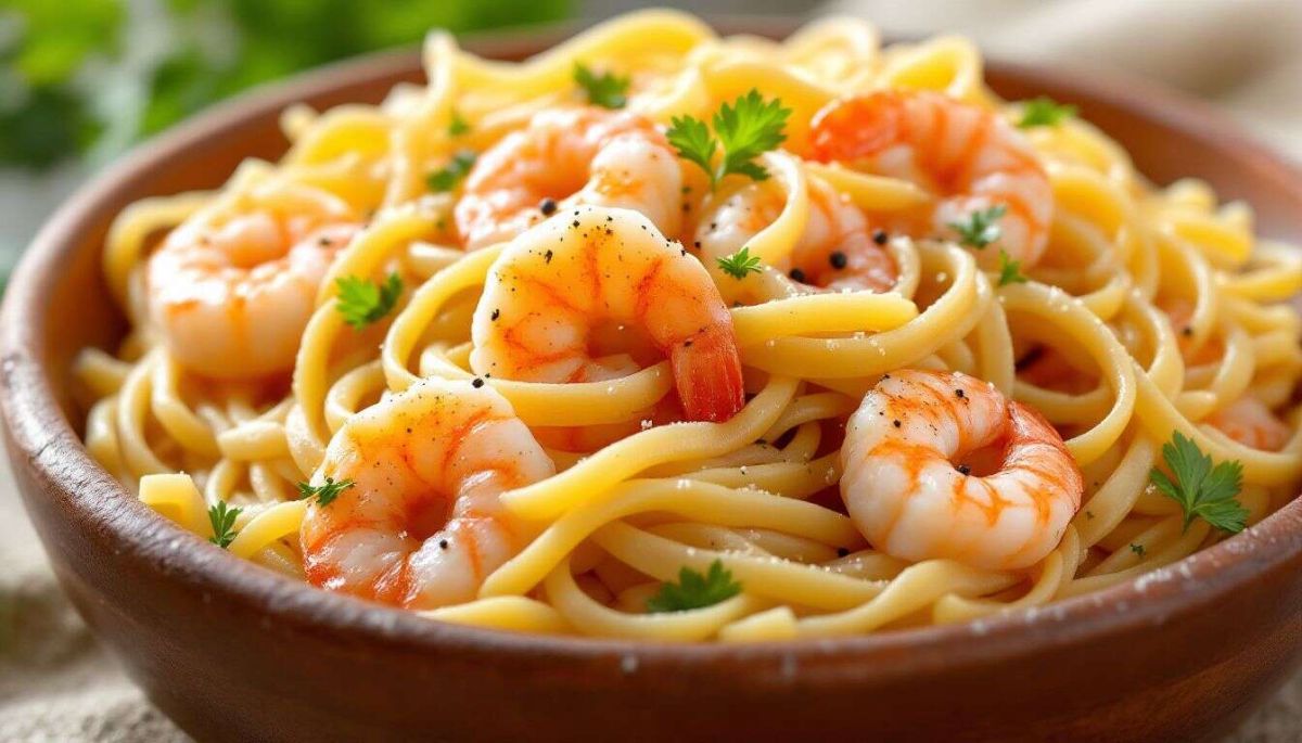 Embarquez pour un voyage gustatif au cœur des saveurs méditerranéennes grâce à cette recette simple et savoureuse de pâtes aux crevettes à la sauce au vin blanc. Ce plat associe parfaitement la texture fondante des pâtes, la tendreté des crevettes et la richesse du vin blanc.