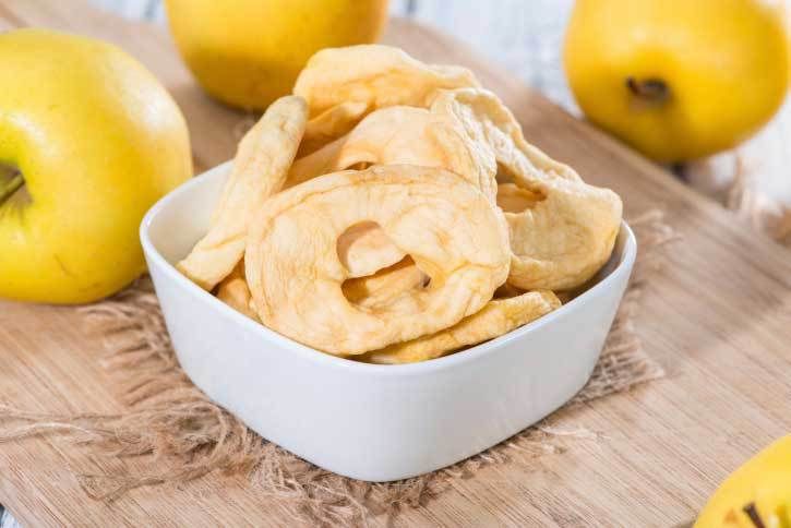 Pour ajouter une touche de saveur, il suffit de plonger les morceaux dans un mélange d'épices comme le curry, le paprika ou la cannelle avant déshydratation.