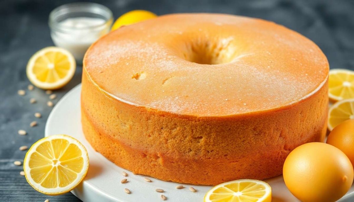 Pour un effet visuel attrayant, servez le cake sur un plat en porcelaine blanche, en l’accompagnant de rondelles de citron et de feuilles de menthe fraîche.