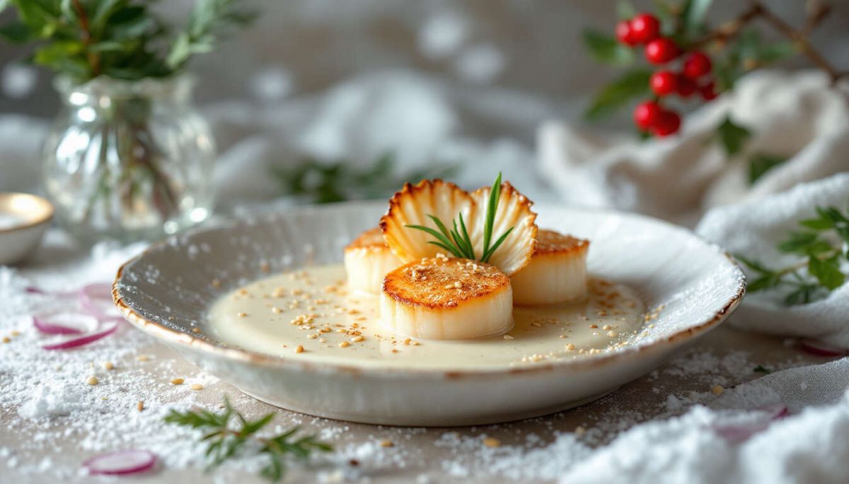 Cette recette revisite la classique Coquille Saint-Jacques, apportant un parfum d'exotisme grâce au lait de coco. C'est un choix parfait pour vos repas de fête qui surprendra et ravira vos convives.