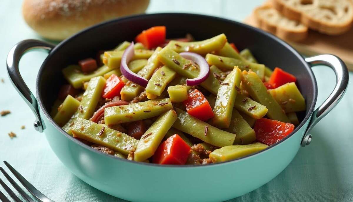 La poêlée de haricots plats, pommes de terre et lardons est un plat chaleureux et savoureux, parfait pour réunir la famille autour de la table. Ce mélange régalera vos convives grâce à ses arômes irrésistibles. Suivez cette recette simple et apportez une touche d'originalité à vos dîners.