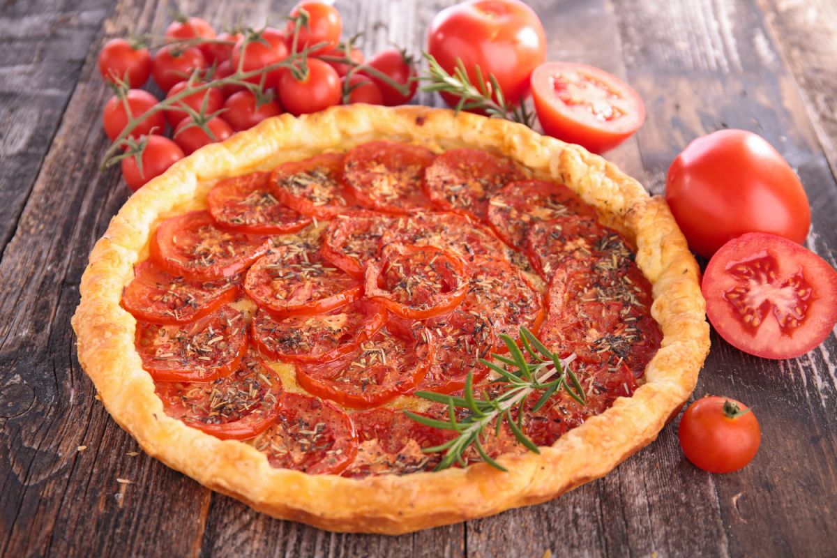 Pour cette tarte, le chef recommande d'utiliser des tomates cerises pour leur douceur, mais tout type de tomate mûre fera l'affaire. Voici ce dont vous aurez besoin pour régaler 5 à 6 convives :